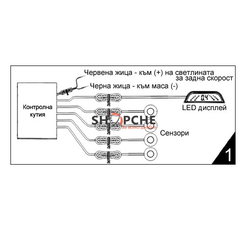 6. 0-30см - опасна зона - опасност - зелен + жълт + червен LED / LCD.