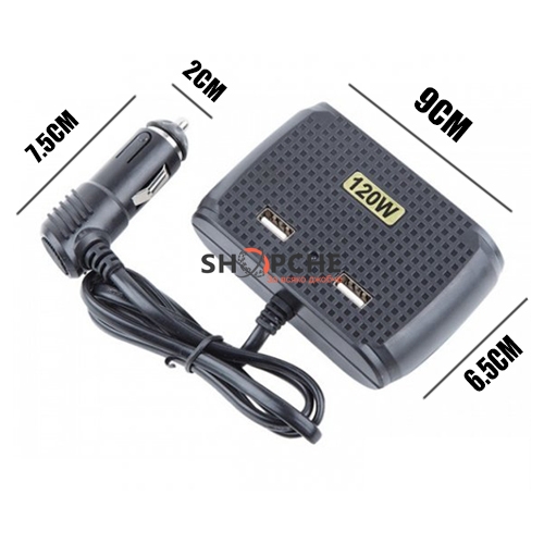Мощен 120W разклонител за кола с 4 гнезда за запалка и USB вход