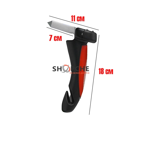 При спешен случай можете да счупите стъклото на колата с върхът на дръжката.