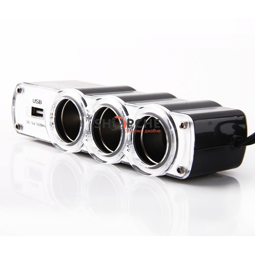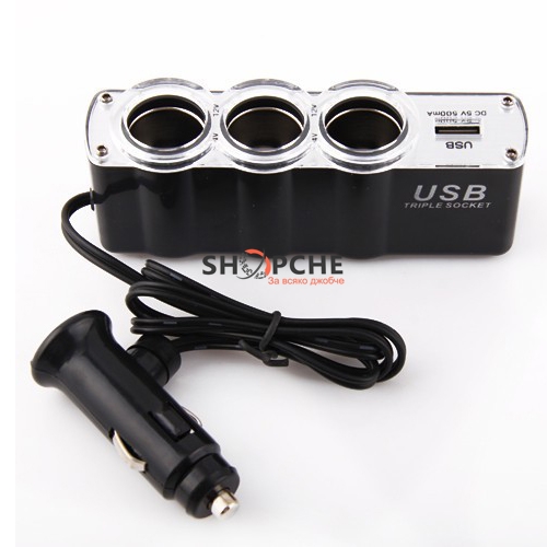 Разклонител за запалка 12V 1 плюс 3 - позволява да включите до 3 устройства към запалката на колата.Подходящ за зареждане на телефони, фотоапарати, таблети, MP3, GPS устройства и др.