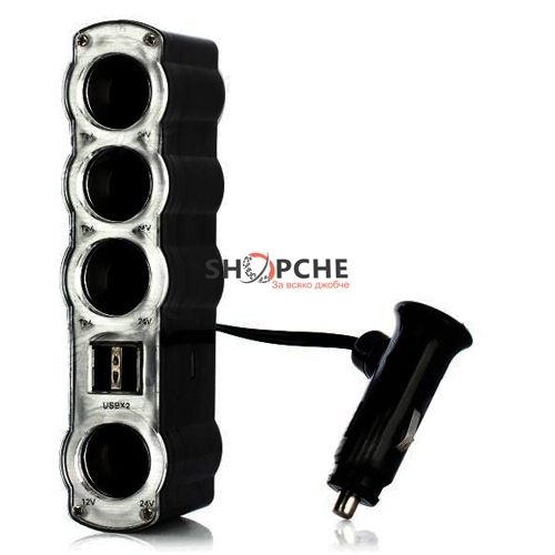 Разклонител за запалка 12V 1 към 4 + 2бр. USB.