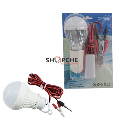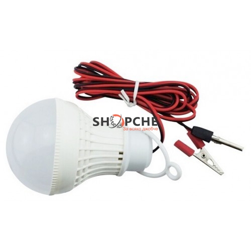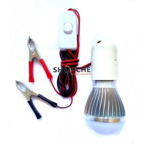 LED лампата се захранва от акумулатор и се свързва към него посредством 2 щипки.