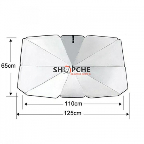 Специалният дизайн на сенника позволява лесно и много бързо поставяне: той се отваря лесно като чадър и се слага на предното стъкло. Когато не ви е нужен, затворете го и го поставете в калъфа.