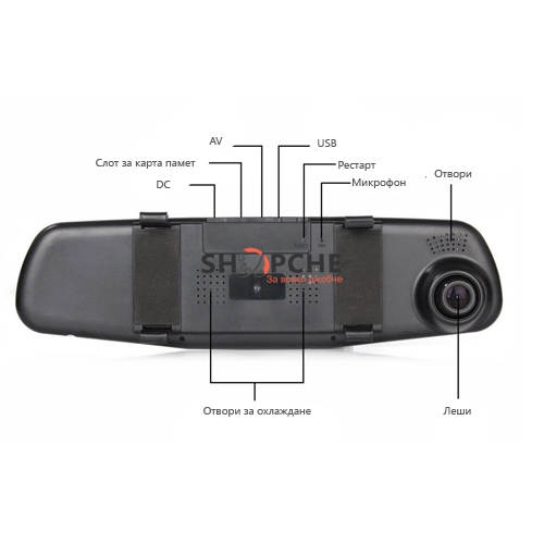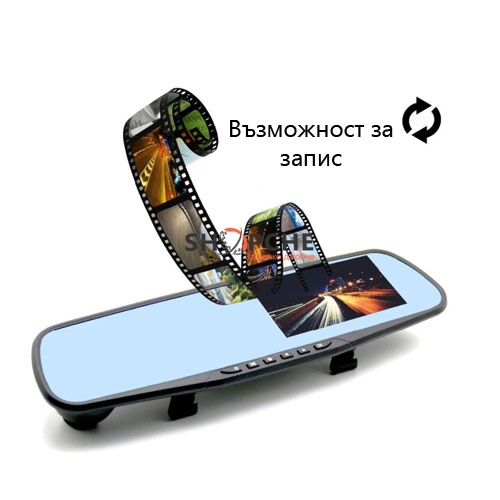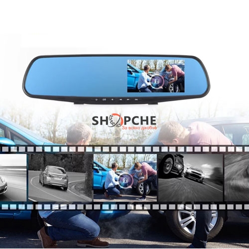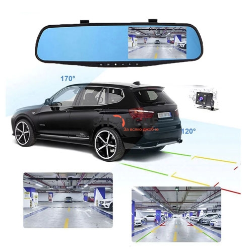 Този модел видеоргистратор представлява много практична комбинация на огледало за автомобил с вграден 4,3 инчов монитор за задно виждане, на който свързвате камерата за задно виждане, която ще Ви използвате удобно при паркиране и същевременно използвате преднат камера като регистратор.