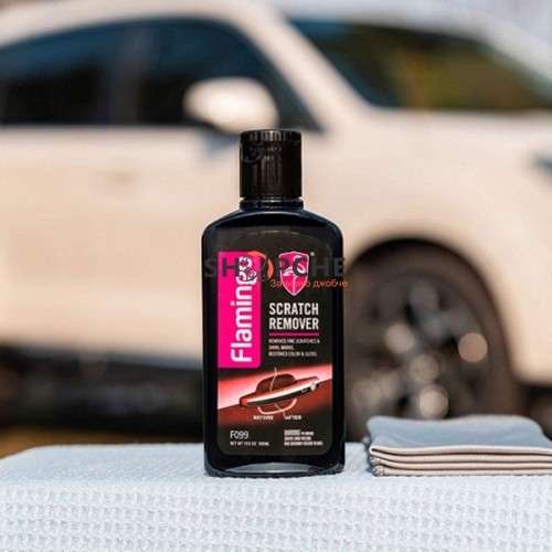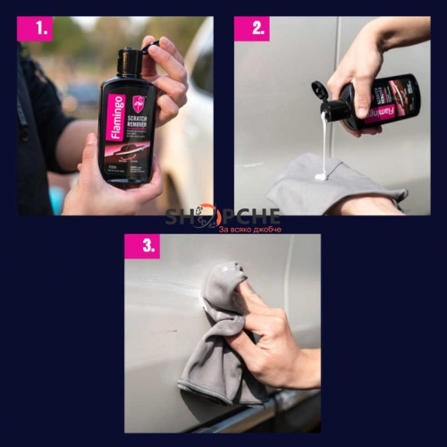 Уникалната формула помага за премахване на фини драскотини от всички покрития на авто-боя. Той също така може бързо и лесно да премахне незначителни следи от боя и водни петна. Възстановява цвета на боята, като остава покритието на боята да изглеждат, като нова и няма да надраска прозрачната боя като конвенционалните смеси за триене. Изключителната абразивна течна формула е удобна и лесна за използване. Начин на употреба: Разклатете добре., Измийте и изсушете колата. Използвайте на хладна повърхност, защитена от пряка слънчева светлина. Изсипете върху чиста, суха кърпа. Разнесете равномерно върху надрасканата област с кръгови движения. Оставете да изсъхне напълно. Избършете с чиста, суха кърпа. Използвай те предпазни средства за очи и ръце, като предпазни очила и гумени ръкавици.
