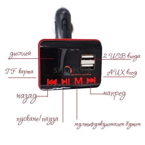 Трансмитер за кола с вграден микрофон,Bluetooth устройство с лесен достъп само с 4 копче,което Ви позволява да приемате обаждания и да шофирате безопасно.