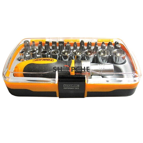 37 приставки: 28 приставки за отвертка: 3mm, 4mm, 5mm, 6mm, 7mm Phillips #0, #1, #2, #3 T10,T15,T20, T25,T27, T30, T40, 1.5mm, 2mm, 2.5mm, 3mm, 4mm, 5mm, 6mm