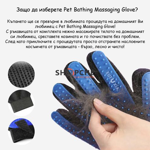 Pet Bathing Massaging Glove е всичко от което се нуждаете за да осигурите перфектната процедута на домашният си любимец!