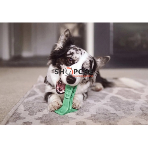 Този висококачествен стик за чистене на зъби е изработен от екологичен каучуков материал. Той е достатъчно силен, за да издържи ухапванията и дъвченето на кучето. С малки жлебове и стабилна основа, чистенето на зъбите може да се осъществява на 360 градуса. Може да се поставя паста в отвора между жлебовете, за да се осъществи най-доброто почистване. Тази четка за зъби има нежен аромат на свеже мляко, който ще направи кучетата да се влюбят в нея. Този стик е подходящ за всички породи и възрасти на кучета.