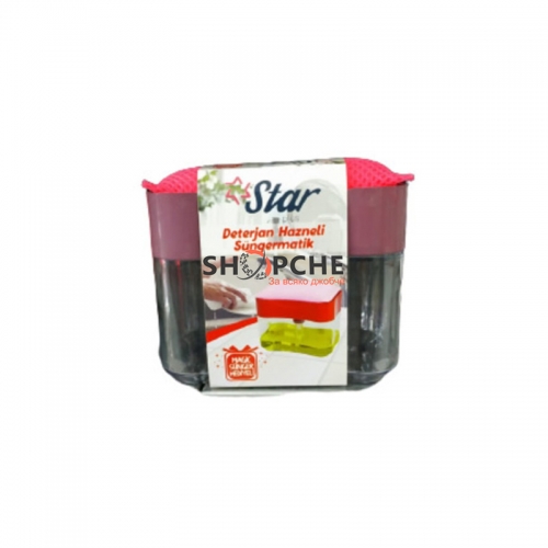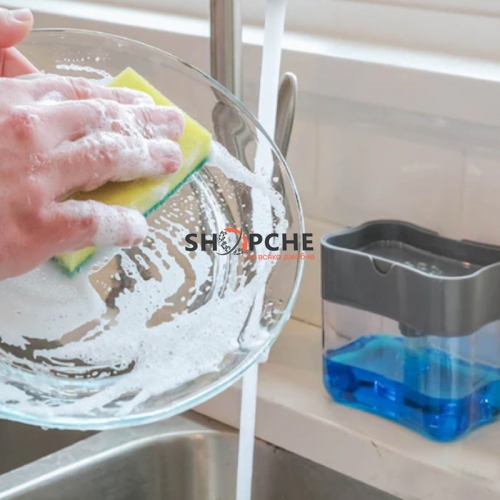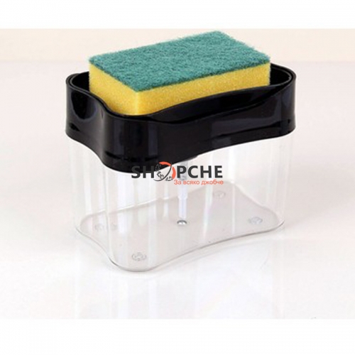 Практичен диспенсър, в който можете да изсипете препарата за съдове и само с едно натискане с гъбата да получите желаното количество за почистване на съдовете.