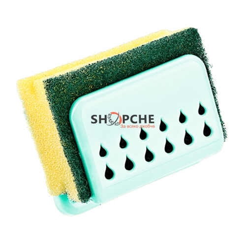 Практичен комплект състоящ се от гъба за съдове и стойка.