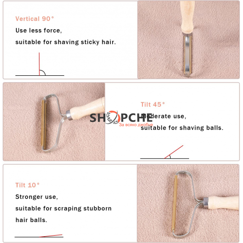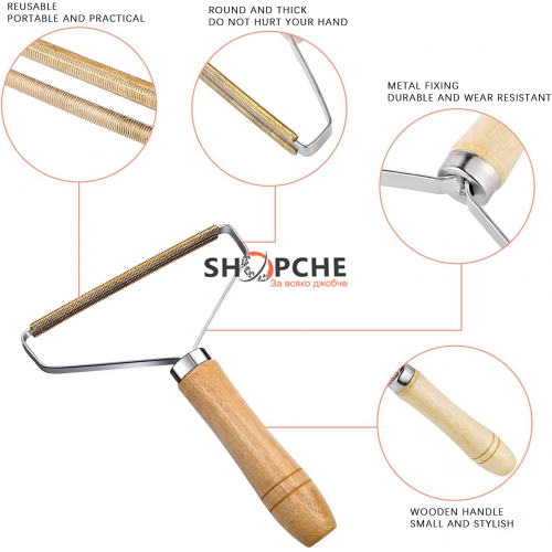 Всички знаем за тези досадни „топчици от влакна“ върху нашите пуловери, жилетки, суичъри, дивани, килими, одеала и др. С тази четка можете да отстраните всички мъхчета и косъмчета от вълнен плат, холна дамаска, мокети и др. и те ще бъдат като нови. Ергономичната дръжка подсигурява удобство при по-продължителна работа, компактните размери на четката позволяват да я носите с вас при пътуване.