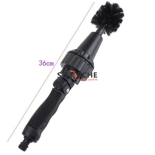 Не се изисква ток или батерии,четката се захранва само от водното налягане и може да се прикрепи към обикновен стандартен маркуч!
