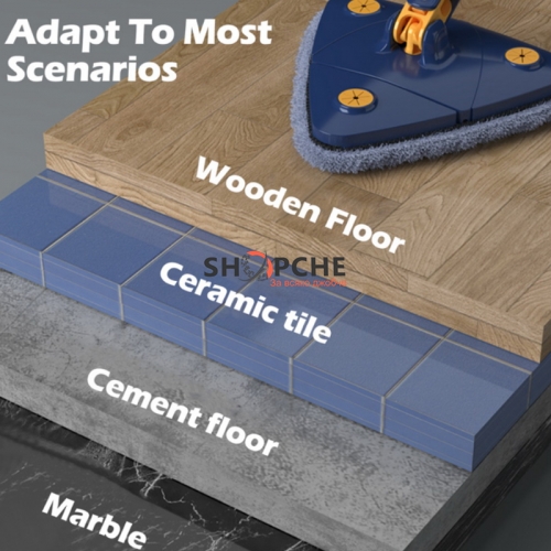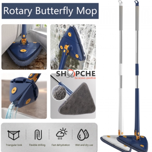 Уникален моп за сухо и мокро почистване с триъгълна глава.