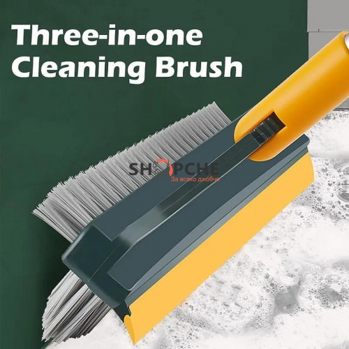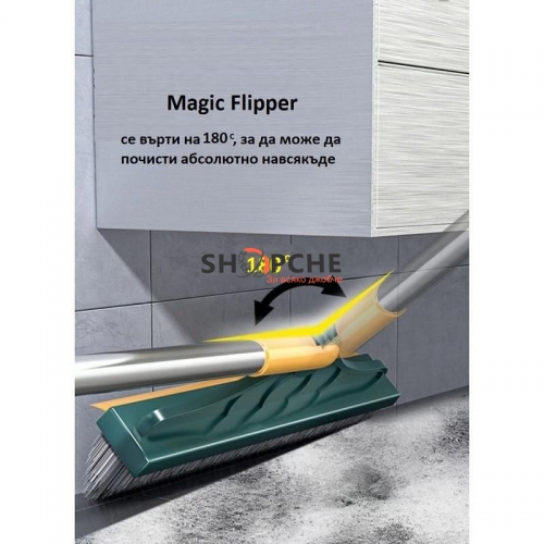 Тройната четка Magic Flipper ®️ е ефективна , лесна и спестяваща усилия 3 в 1 дизайнерска четка за почистване на под с твърд косъм + гумена чистачка; Силна почистваща способност; Четка + стъргало за изстъргване и лесно отстраняване на петна, упорити замърсявания, мръсна вода и прах;