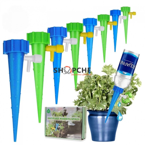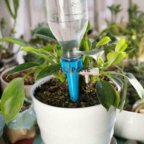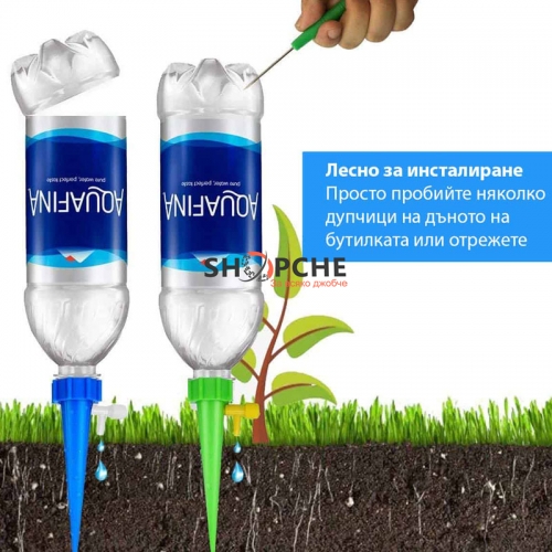 Поставете пластмасовата част вътре в почвата и поставете пълна бутилка вода върху пластмасовата част. Използвайте регулиращия клапан, за да контролирате количеството вода, което отива в почвата.
