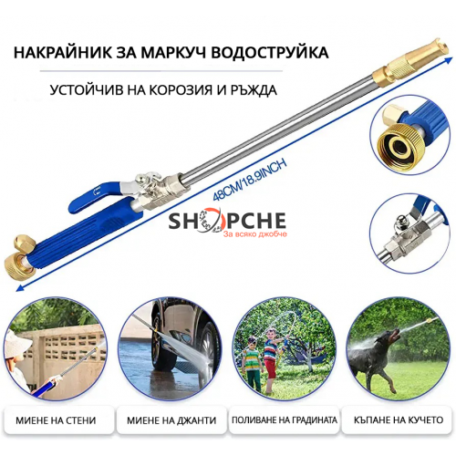 С нашия накрайник за маркуч, поливането на растенията ви става по-лесно и ефективно, а почистването на труднодостъпни повърхности - по-бързо и по-ефикасно. Не губете време и вземете вашия накрайник сега, за да улесните процеса на почистване и поливане във вашата градина или двор! ????????