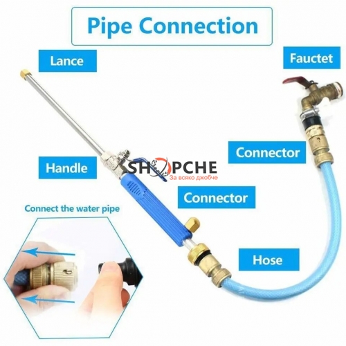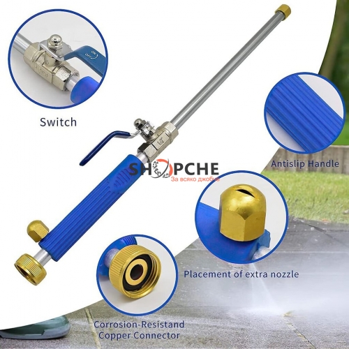 - Регулируемата метална дюза позволява прецизно почистване и поливане.