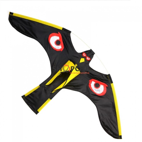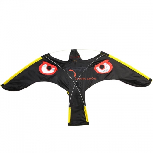 Хвърчилото е под формата на черен ястреб и е изработено ръчно.