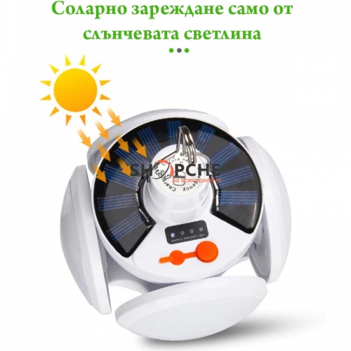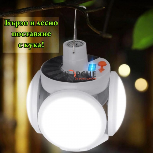 Зарежда се бързо и безпроблемно от соларният й панел чрез слънчева светлина през деня и свети ярко на тъмно.