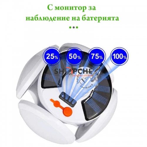 Лампата разполага с монитор за проследяване на нивото на процент на батерията.