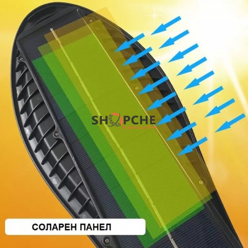Тази лампа е с интелигентна система за външно осветление, която интегрира най-добрите енергоспестяващи части – фотоволтаичен панел, осветително тяло, сензор, контролер и литиева батерия, всичко това в една кутия.