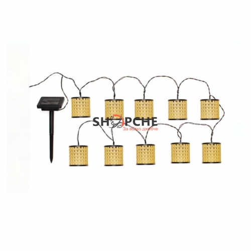 Соларен гирлянд с пластмасови крушки, захранване изцяло от слънчевата светлина.