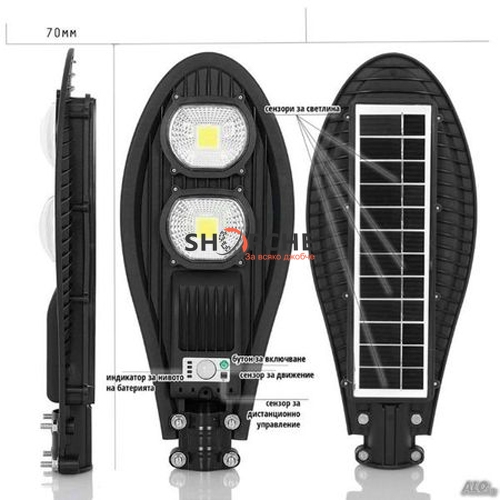 Системата е изцяло автономна, през светлата част на деня се зарежда батерията, а веднага след като се стъмни осветлението се включва автоматично, благодарение на сензорите които са в соларния панел.Соларната улична лампа е интелигентна система за външно осветление, която интегрира най-добрите енергоспестяващи части – фотоволтаичен панел, осветително тяло, сензор, контролер и литиева батерия, всичко това в една кутия.