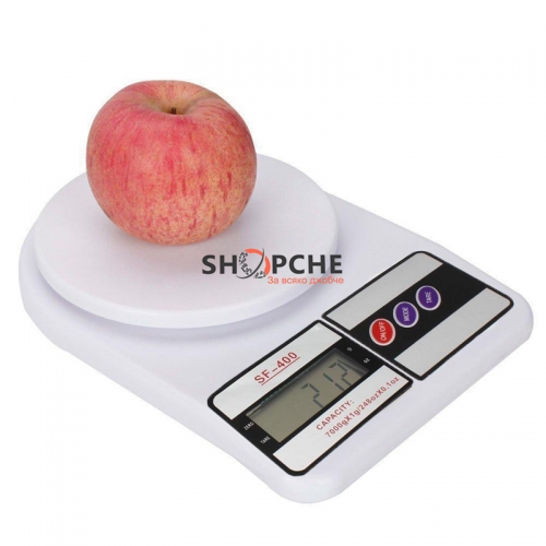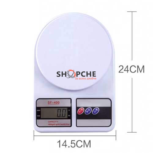 Везните са с приятен дизайн и е полезен инструмент за работа в кухня,магазин,лаборатория,аптека и т.н. както и за подарък. Тази кухненски везни могат да се използват за претегляне на плодове, сладкиши, хранителни продукти, медицински материали, суровини и и други. Везните са изработени от качествена пластмаса. Функцията ТАРА позволява да сложим върху плота на везната съд и след като натиснете копчето ТАРА, тогава тази функция изчиства теглото на сложения съд и в този съд вие може многократно да слагате различни неща за мерене като ще бъде измерено само теглото на измерваните продукти или течности.
