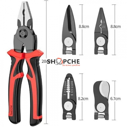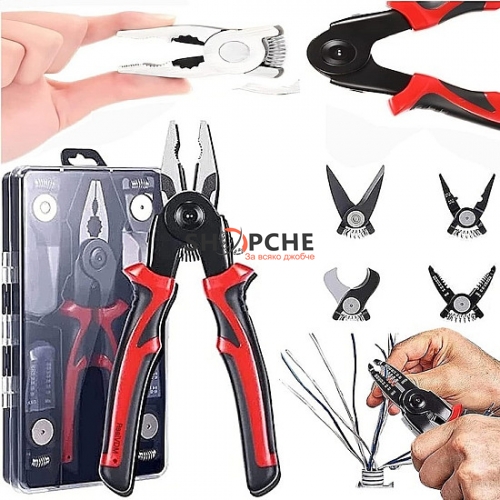 Всеки електротехник или домашен майстор знае колко важно е да разполага с надеждни и многофункционални инструменти. Комплектът 5 в 1 многофункционален инструмент съчетава клещи, ножици, резачка за кабели, кримпване и разкопчаване в един удобен инструмент. Той е лек, компактен и лесен за използване, осигурявайки всичко необходимо за работа с електрически кабели и проводници.