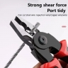 - Основните функции включват клещи за кабели, ножица за рязане на кабели, резачка за малък диаметър, кримпване и машинка за отстраняване на изолация.