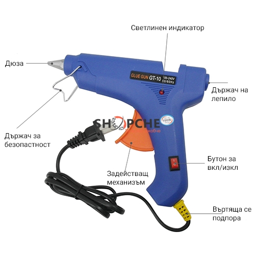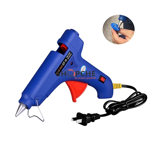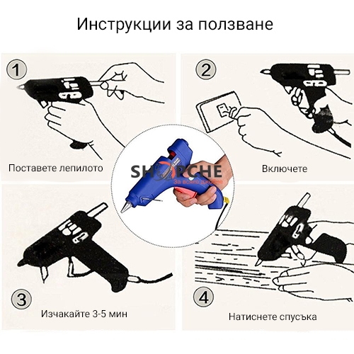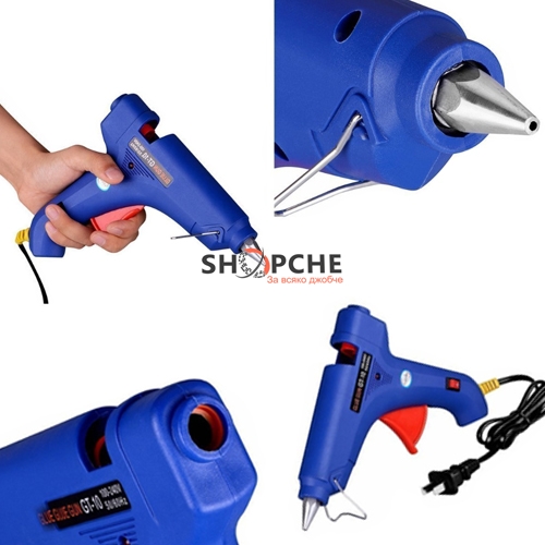 Пистолетът за силикон работи с термолепило на пръчки, част от което под действие на високата температура се втечнява.