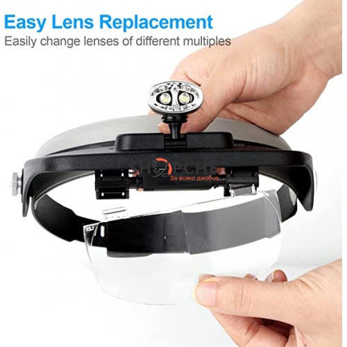 увеличителни лещи тип очила с различно увеличение според нуждите.