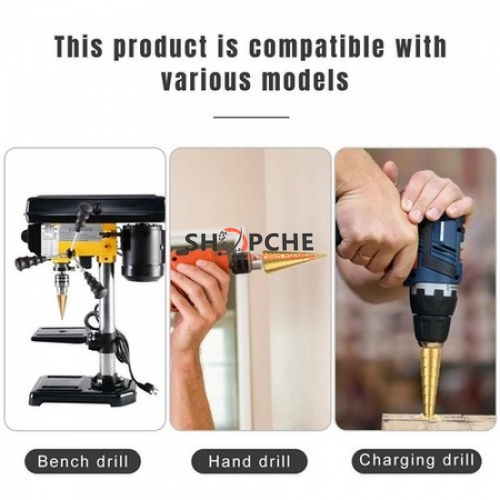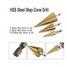 Трите свредла са с шестоъгълен накрайник, подходящ за монтаж на бормашина. Направени от стомана и покрити с титаниев слой, за да гарантират сила и издържливост. Диапазонът на пробиване е с дебелина от 4 до 32 милиметра, като първата, минимална стъпка е 4 мм. в диаметър, а всяка следваща стъпка осигурява отвор с 2 мм. повече дебелина от предходния. Най-малкото свредло е с дебелина до 12 мм., второто - до 20 мм. и третото - до 32 мм.