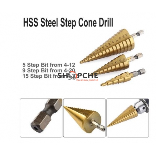 1 бр. Стъпаловидно свредло 4-20 мм. комбинирано в 9 стъпки.