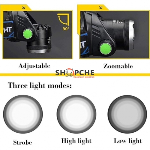 3 РЕЖИМА LED ЛАМПИ - Изберете между супер ярка, ярка и мигаща струйна светлина. Изберете различни насочвания - направо напред, надолу или между тях. Регулируемо увеличение за близка работа или разширяване за дистанционно осветление. Бутон за управление, удобно разположен, чувствителен и лесен за натискане.