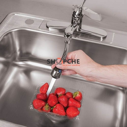 Turbo Flex 360 e 15 сантиметров гъвкав накрайник за смесител, благодарение на който ще намалите времето за миене на съдове наполовина.