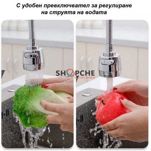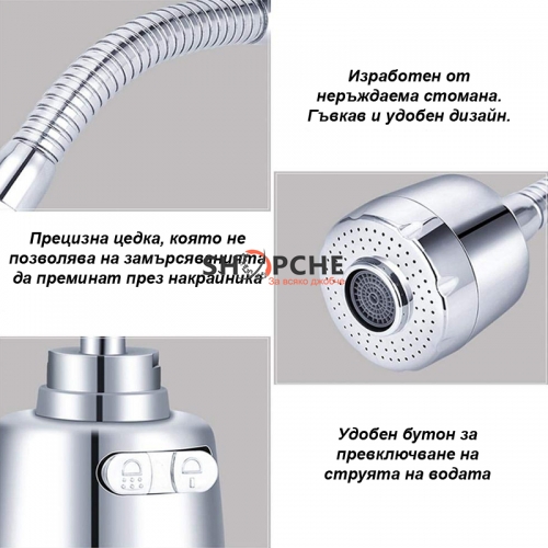 Удължител за чешма с гъвкаво тяло и 2 функции на водната струя.