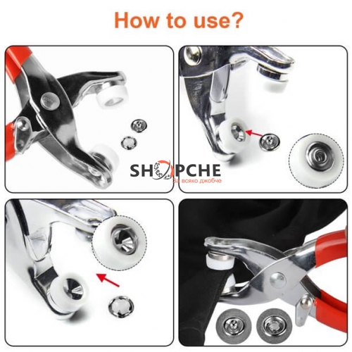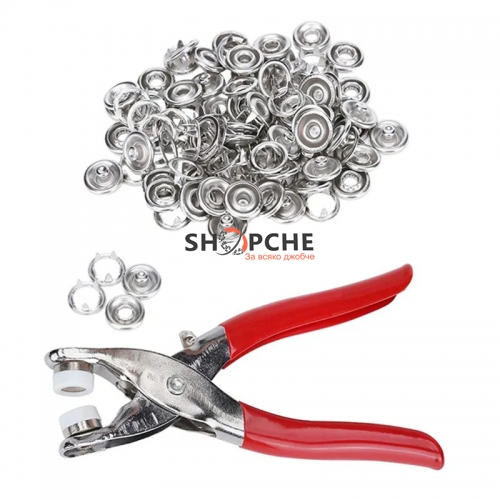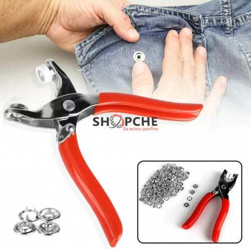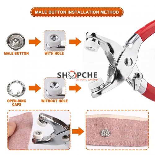 Здраво и сигурно закрепване: Нашите клещи за капси са изработени от висококачествени материали, които гарантират тяхната здравина и дълготрайност. Те осигуряват сигурно закрепване на капсите върху дрехи, чанти, ръкавици, аксесоари и много други.