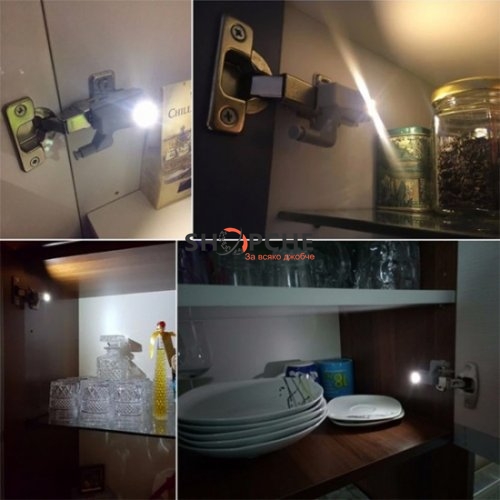 При затваряне на шкафа, вратата натиска бутона и светлината се изключва.