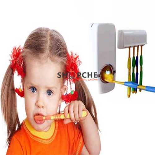 Автоматичен диспенсър за паста за зъби с дозатор и поставка за четки