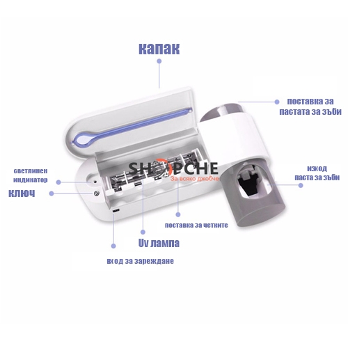 Стерилизатор за четка за зъби + Дозатор за паста за зъби