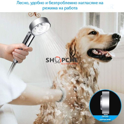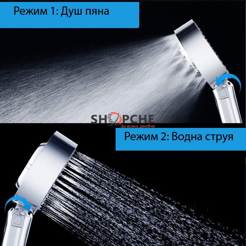 От едната страна слушалката разпръсква вода, а от другата – сапунена пяна ( необходимо е само да заредите пълнителя с любимият си душ гел, или шампоан)
