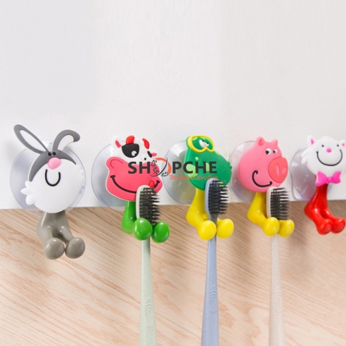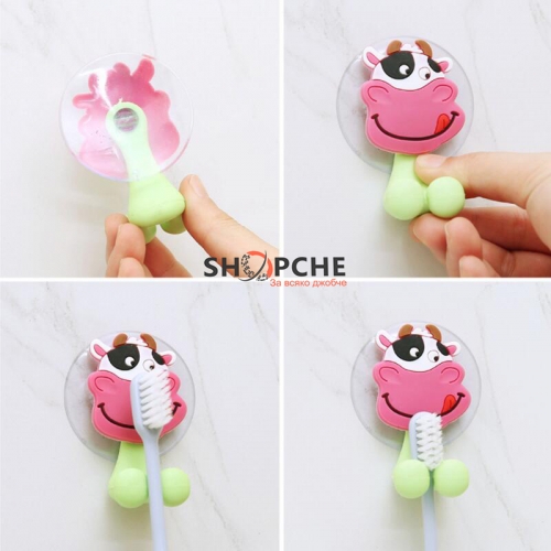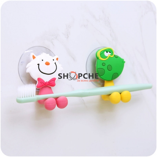 Единична весела вакуумна поставка за четки за зъби със свеж дизайн и сладурска цветна фигурка.