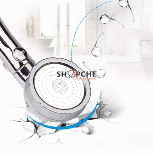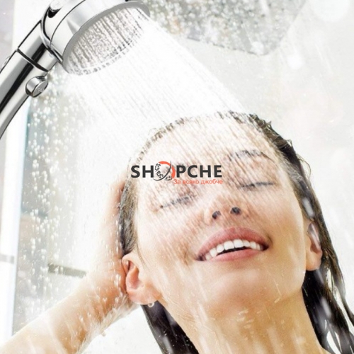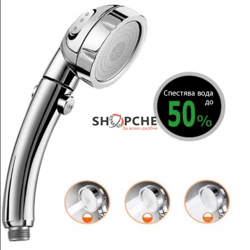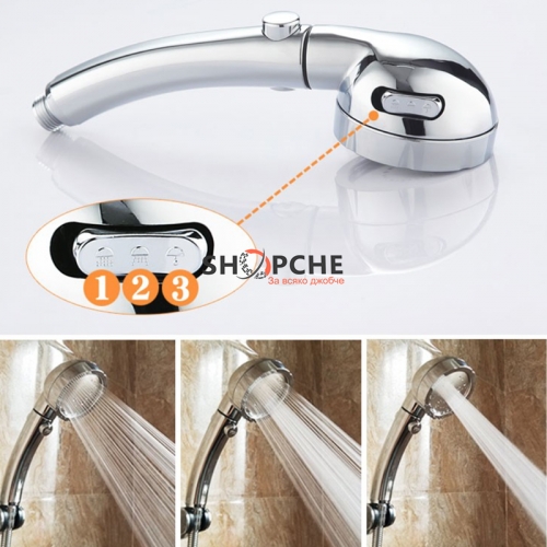 Практична душ слушалка с три функции на водната струя и бутон за пускане / спиране на водата