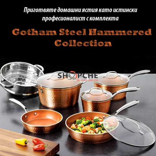 Представяме Ви комплектът от 10 броя съдове за готвене Gotham Steel Hammered Collection!