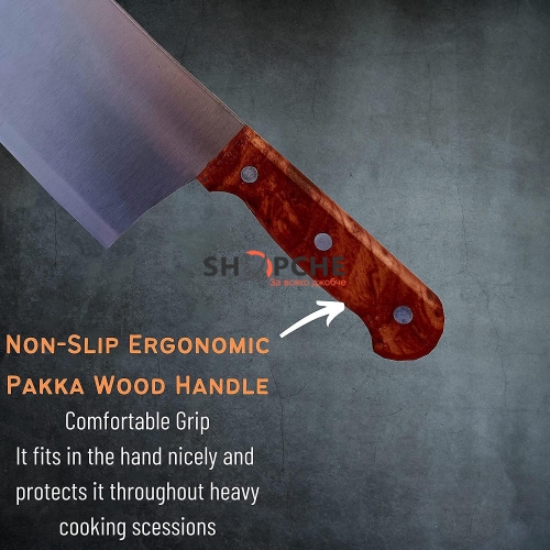 Остър професионален нож за секачи, изработен от висококачествена въглеродна неръждаема стомана, която е издръжлива, устойчива на ръжда и корозия. Може да се използва за вашите ежедневни кухненски задачи за кълцане, рязане, нарязване на кубчета и смилане на всички видове месо, зеленчуци, плодове и хляб, осигурявайки ви чисти и прецизни разфасовки. Това е най-добрият избор както за домашни готвачи аматьори, така и за професионалисти, който прави приготвянето на вашата храна по-лесно и по-бързо.