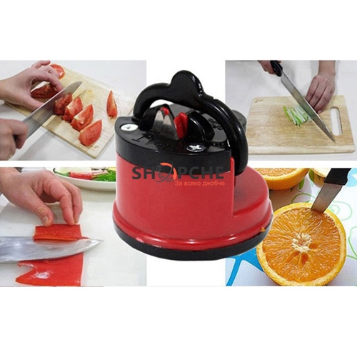 Предназначено е за заточване на ножове от всякакъв вид. Точилни камъни – твърд сплав ВК-8. Държи се за равна, гладка и повърхност с помощта на гумирания вакуум. Снабдено е с метална насочваща за изравняване на платното на ножа по време на заточването..