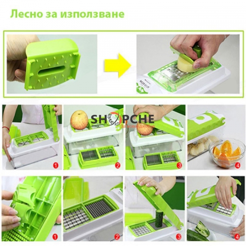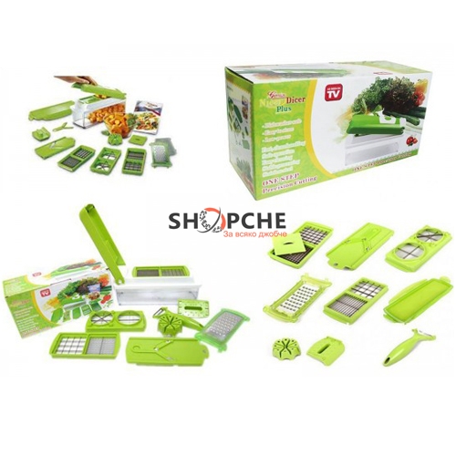 Nicer Dicer Plus е незаменимият уред, който ще направи рязането на зеленчуци, плодове, месо, сирене и подправки бързо, лесно и ефикасно. С този иновативен инструмент, приготвянето на супи, салати и разнообразни ястия става истинско удоволствие.