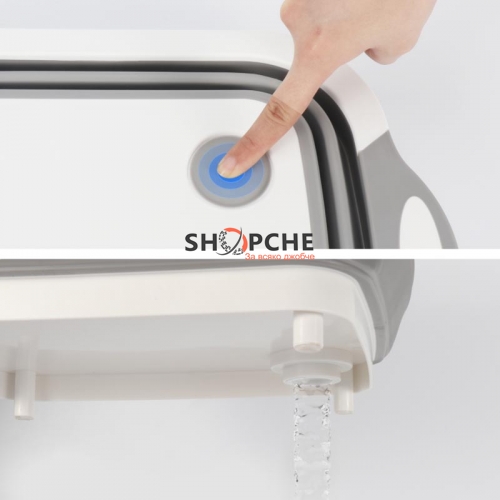 Само с едно движение и дъската се превръща в практична купа – просто натискате средата с ръка и задържате рамката с друга ръка, отваряте ваната за плодове и зеленчуци и започвате да миете!
